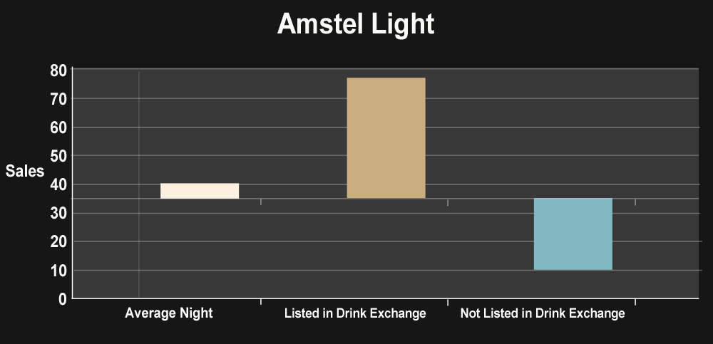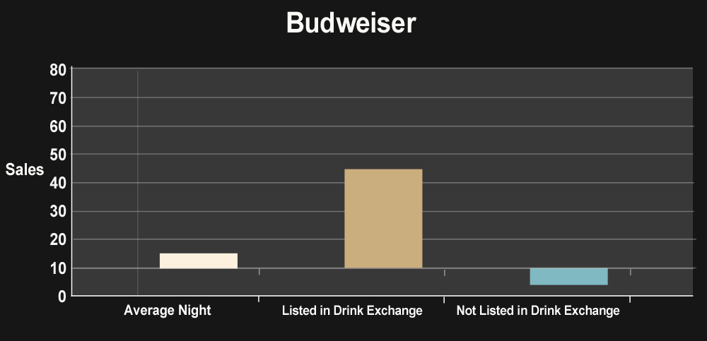 Sales increase so much for the listed items that Drink Exchange bars are often compensated by their liquor distributor to list specific items in the system.